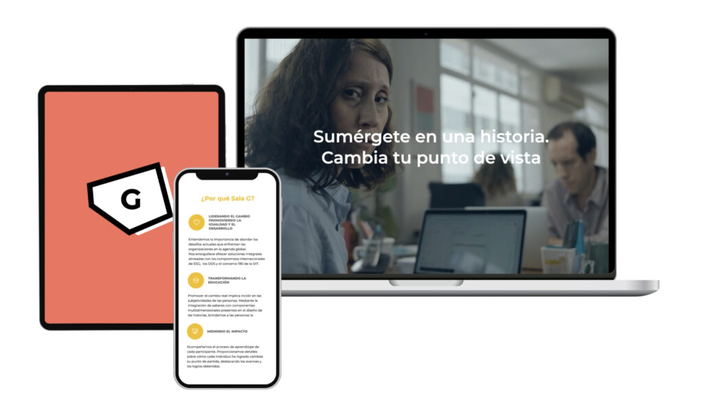 Sala G es una plataforma regional de formación que ofrece una experiencia cinematográfica e interactiva única en su tipo sobre género, inclusión y derechos humanos, con un objetivo central: promover cambios de conducta y fortalecer habilidades personales y colectivas para transformar las organizaciones.